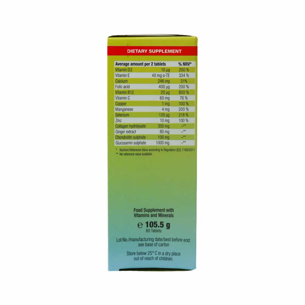 فلکس اورت یوروویتال یک مکمل غضروف ساز با فرمولاسیونی متعادل از ویتامینها، املاح معدنی و عناصر کمیاب به علاوه گلوکوزامین و کندروئیتین سولفات، عصاره زنجبیل و کلاژن هیدرولیز شده میباشد. قرص flex a vert با تحریک ساخت کلاژن و تقویت بافت غضروفها باعث بهبوددامنه حرکتی مفاصل شده و از طریق کاهش التهاب، درد مفاصل را تسکین میبخشد. flex-a-vertسبب حفظ سلامت استخوان بهبود عملکرد عضلات نیز میگردد.