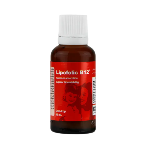 لیپوفولیک ب12، مکمل تغذیه ای به شکل دارویی قطره خوراکی است که برای کمک به تقویت رشد ذهنی و جسمی کودکان کاربرد دارد. لیپوفولیک ب12 حاوی 200 میکروگرم اسیدفولیک لیپوزومال و 5 میکروگرم ویتامین B12 لیپوزومال در هر میلی لیتر است که دارای جذب حداکثری و زیست دسترسی بالا بوده و علاوه بر تأمین نیاز به این ویتامین ها و جلوگیری یا رفع کمبود، به بهبود کم خونی ناشی از کمبود فولیک اسید و B12 و سلامت سیستم عصبی نیز کمک می کند.