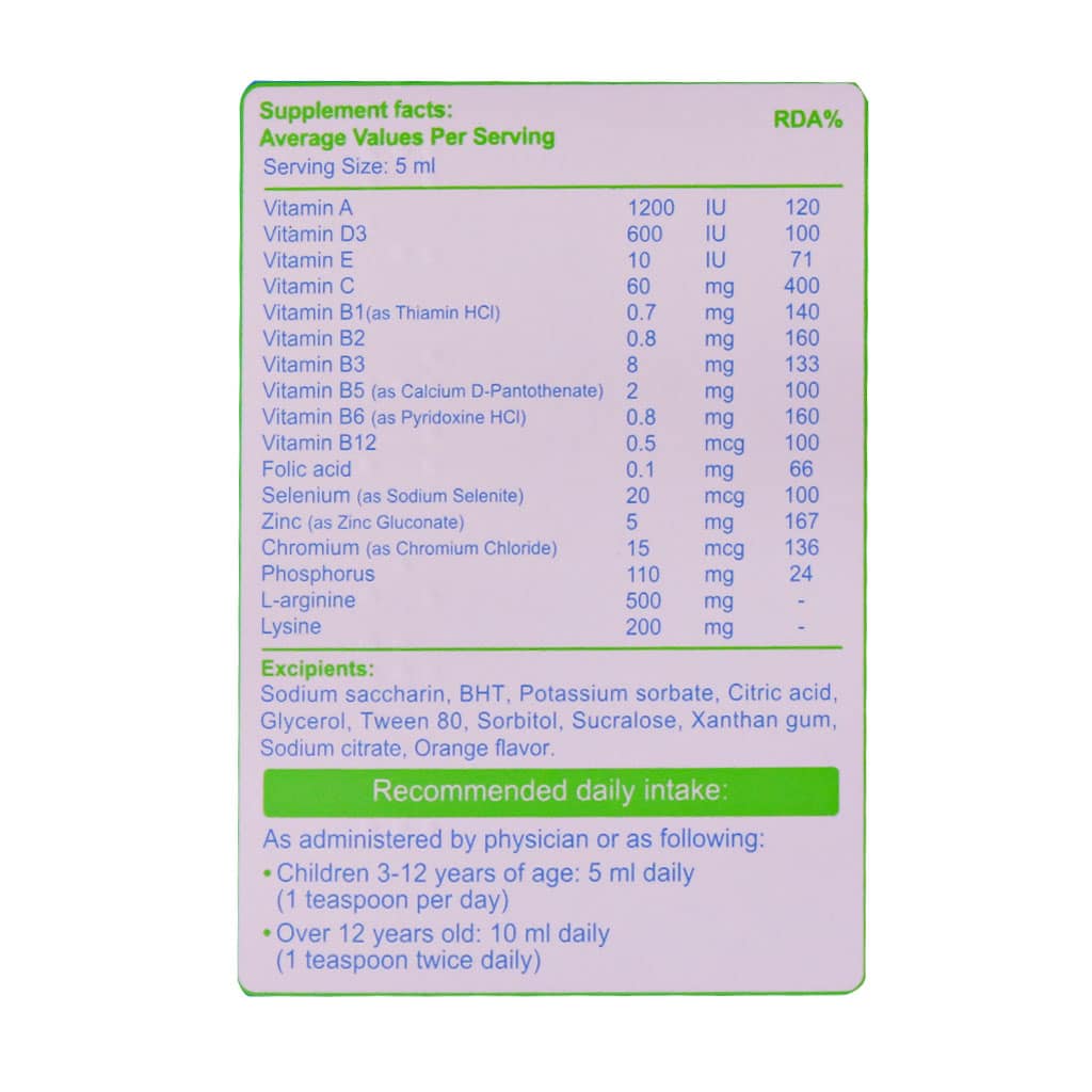 - 3 تا 12 سال: 1 بار در روز به میزان 1 قاشق مرباخوری (معادل 5 میلی لیتر روزانه)