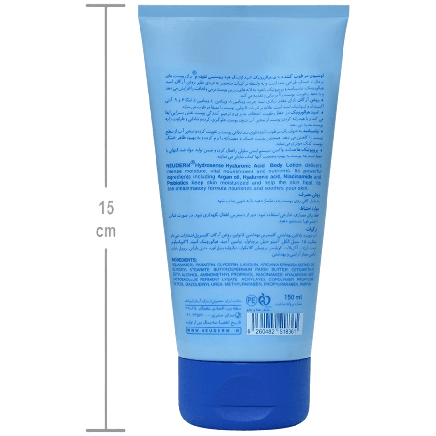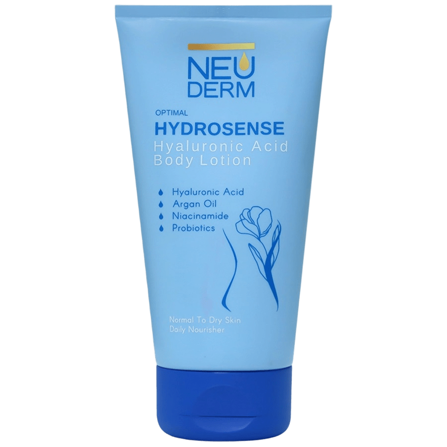 لوسیون مرطوب کننده بدن هیالورونیک اسید اپتیمال هیدروسنس نئودرم برای پوست های نرمال تا خشک طراحی شده است و به واسطه ترکیبات منحصر به فردی نظیر روغن آرگان، اسید هیالورونیک، نیاسینامید و پروبیوتیک با نفوذ به لایه های زیرین پوست نرمی و لطافت را افزایش می دهد و با حفظ رطوبت، پوست را آبرسانی و تغذیه می کند.