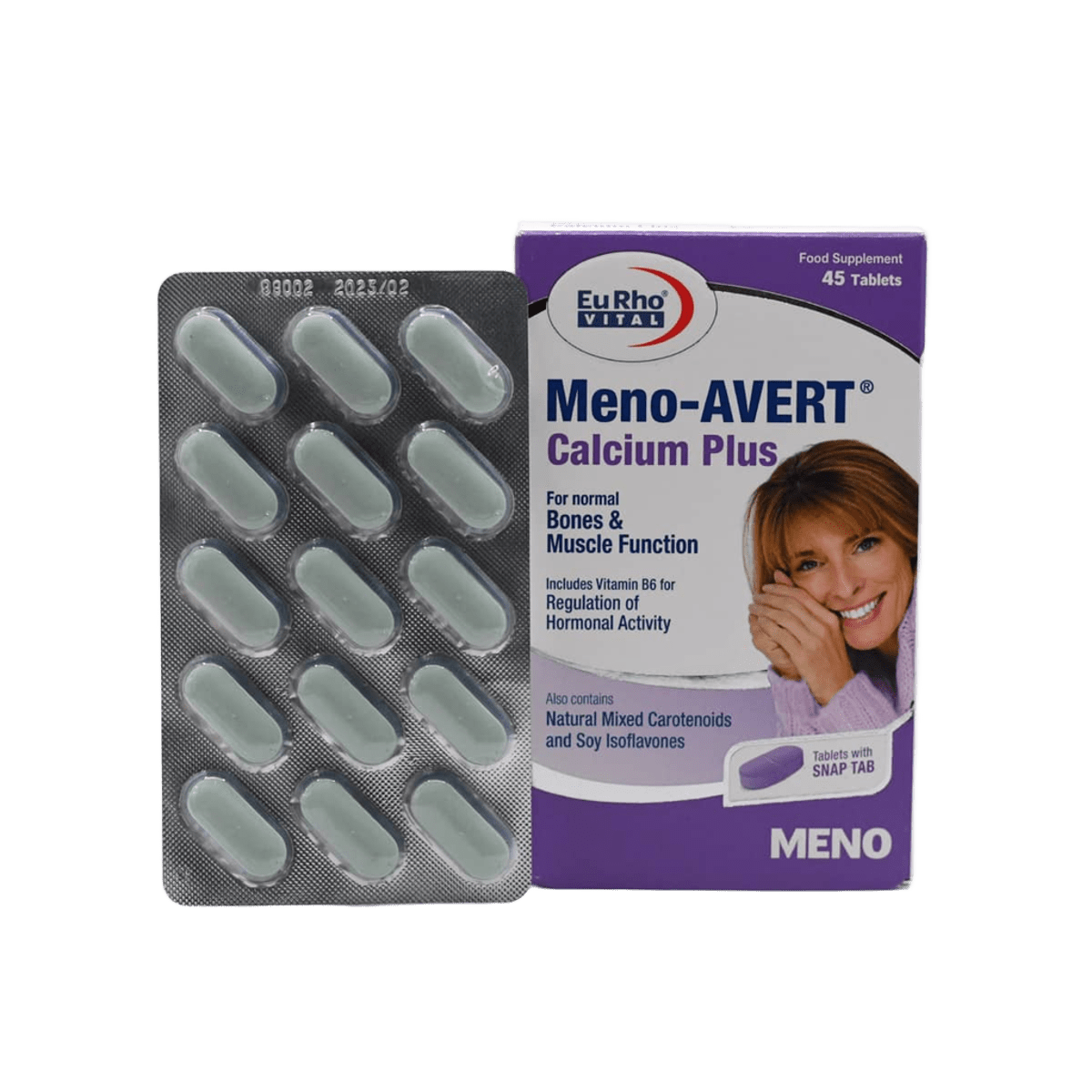 قرص منو اورت کلسیم پلاس یوروویتال یک مکمل تغذیه ای با فرمولاسیونی منحصر به فرد برای تأمین نیازهای زنان بالای 50 سال در دوران پس از یائسگی می باشد. منواورت کلسیم پلاس مخلوطی از 21 ویتامین و ماده معدنی به همراه کاروتنوئید های طبیعی و ایزوفلاون های سویا می باشد. ترکیبات موجود در این فرآورده برای حفظ سلامت و تراکم استخوان، عملکرد طبیعی مفاصل مناسب می باشد. همچنین ترکیبات طبیعی موجود در قرص meno avert کلسیم پلاس به برقراری تعادل هورمونی بانوان در دوران پس از یائسگی کمک نموده و عوارض فیزیکی و خلقی ناشی از یائسگی را در این افراد تخفیف می بخشد. منو اورت کلسیم پلاس یوروویتال تحت لیسانس شرکت Euro OTC Pharma GmbH آلمان و در هگمتان داروی غرب ایران تولید و بسته بندی می گردد. در هر بسته از قرص منو اورت کلسیم پلاس 45 قرص موجود می باشد. در ادامه این مطلب به نقد و بررسی تخصصی قرص Meno avert calcium plus خواهیم پرداخت.
