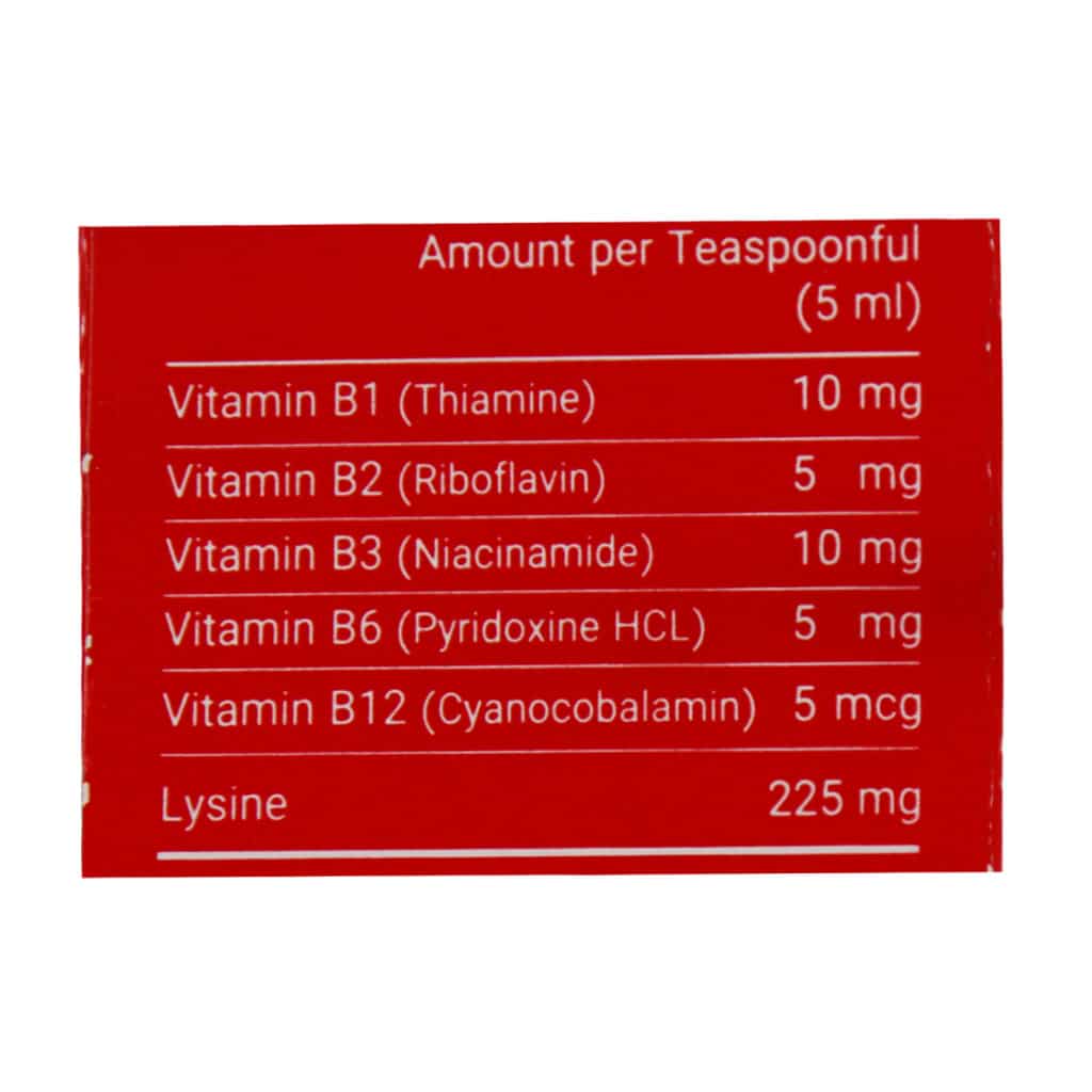 متابولیسم لیزین ارتباط نزدیکی با ویتامینهای گروه B دارد. از این رو در فرمولاسیون شربت پدیاموند از این گروه ویتامینها نیز استفاده شده است. از طرفی ویتامینهای گروه ب، خود نقش مهمی در متابولیسم انرژی، عملکرد شناختی، تنظیم اشتها و رشد کودک ایفا میکنند.