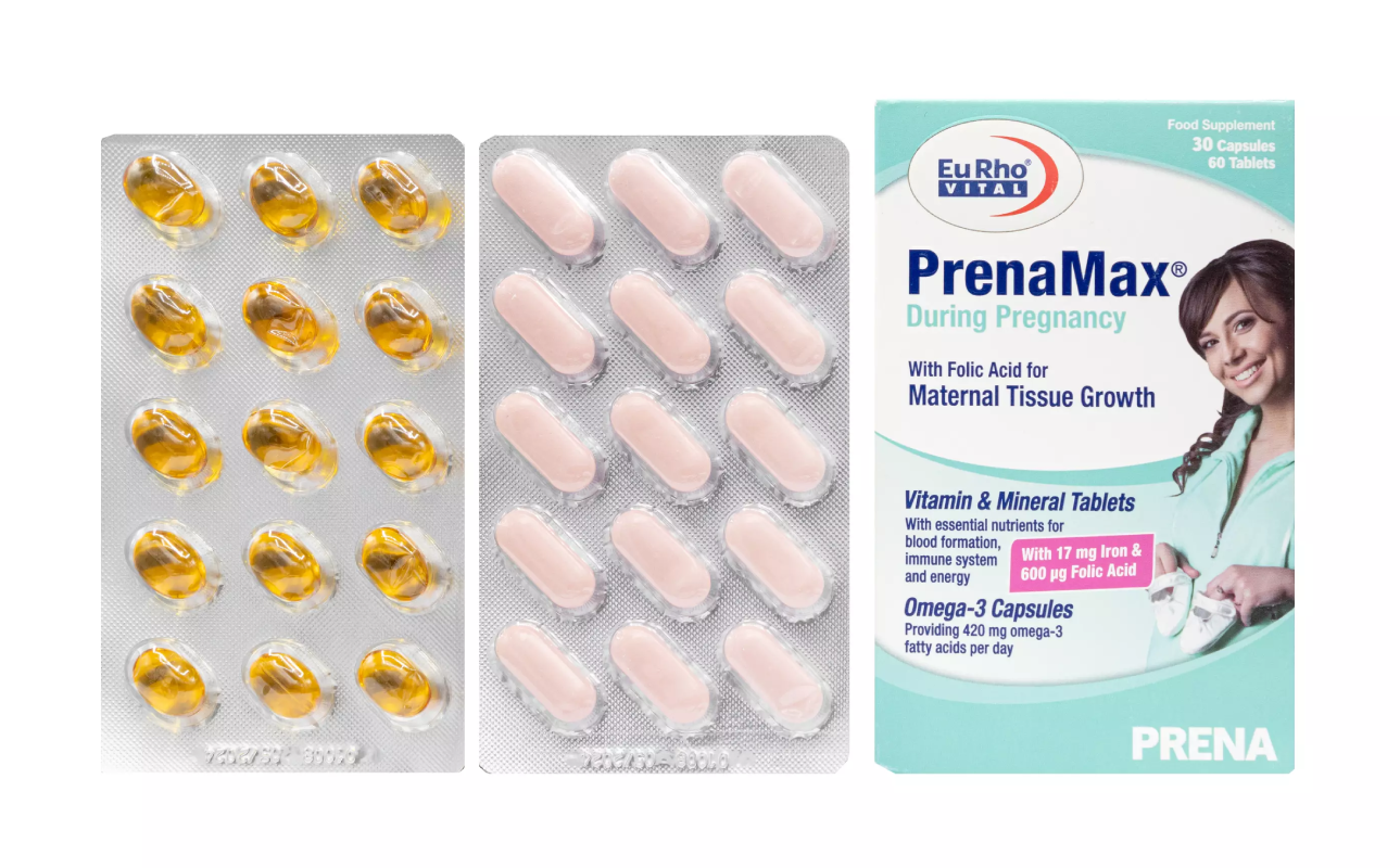 – روغن ماهی: روغن ماهی منبعی غنی از اسیدهای چرب امگا-3 من جمله؛ EPA (ایکوزاپنتانوئیک اسید) و DHA (دوکوزاهگزانوئیک اسید) میباشد. با توجه به اینکه این اسیدهای چرب نقش ساختاری در مغز و شبکیه چشم جنین دارند، میتوانند در ارتقای ضریب هوشی و تقویت بینایی نوزاد مؤثر باشند. لذا مصرف مقادیر کافی از آنها در دوران بارداری از اهمیت بسیار بالایی برخوردار است. همچنین شواهدی موجود است که نشان میدهد، DHA در وزن گیری جنین، تقویت سیستم ایمنی و کاهش ریسک ابتلا به آلرژی در نوزاد مؤثر است. توصیه میشود تمام خانمهای باردار روزانه 300 الی 500 میلیگرم روغن ماهی مصرف نمایند. پرینامکس با 420 میلیگرم روغن ماهی به ازای هر سافت ژل، نیاز روزانه افراد باردار را تأمین مینماید.