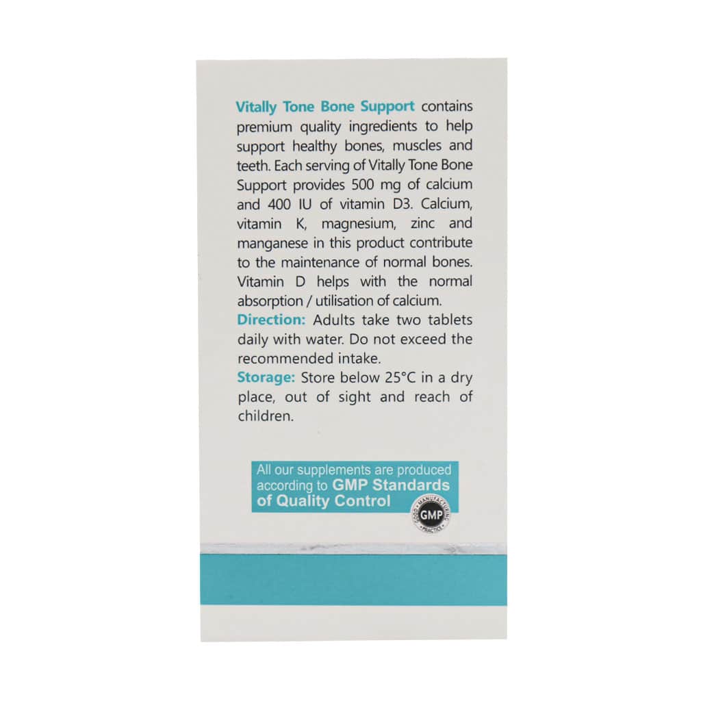 مکمل بون ساپورت ویتالی تون حاوی ریزمغذیهایی از جمله کلسیم با ملح سیترات، ویتامین D، ویتامین K، منیزیم، زینک (روی)، بور، مس و منگنز است.